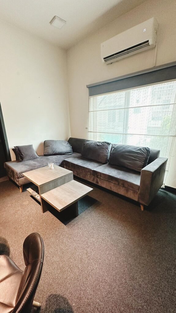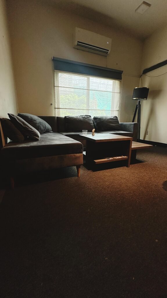 This residency in Lahore is designed with this idea in mind. It has three layers: a personal room, a shared common area for guests, and a third space dedicated to work, whether for a team or individual pursuits. There’s also a small kitchen nearby, allowing life to flow in perfect harmony.