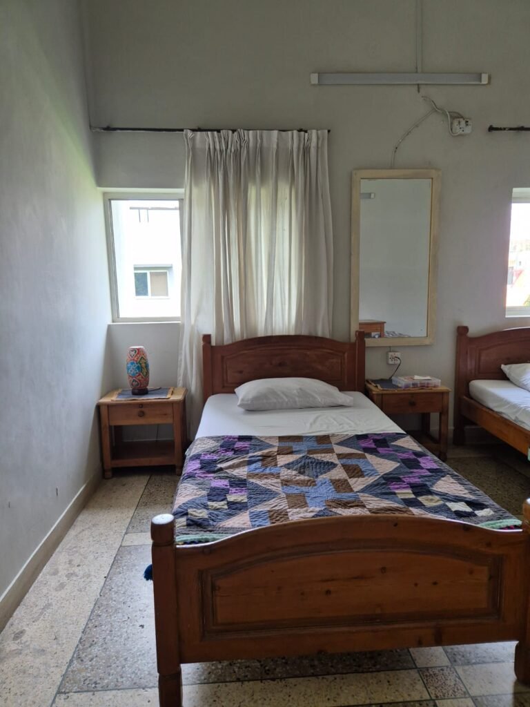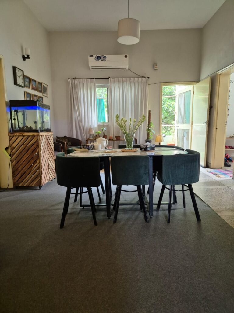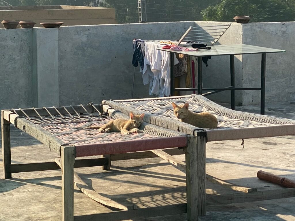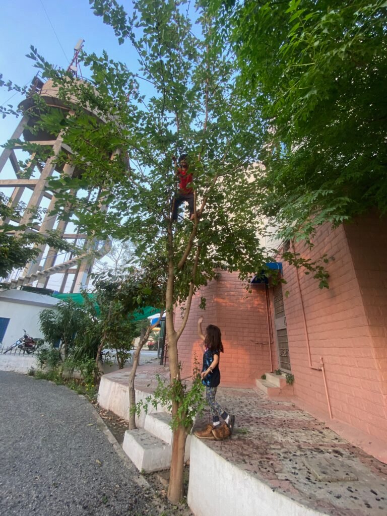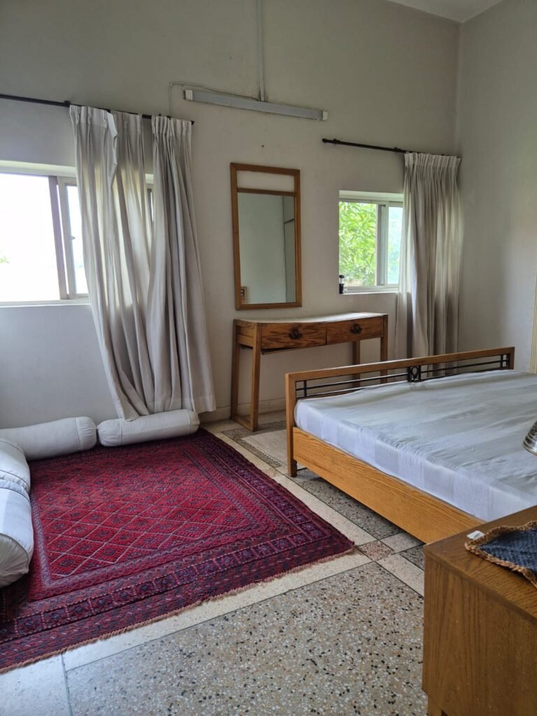 It’s an old house, surrounded by Jamun and guava trees in the backyard. Mango, cheeku, and sukhchain trees provide the perfect amount of privacy and keep a cool breeze flowing through the house all day. There are large windows in every room, allowing for excellent cross-ventilation.